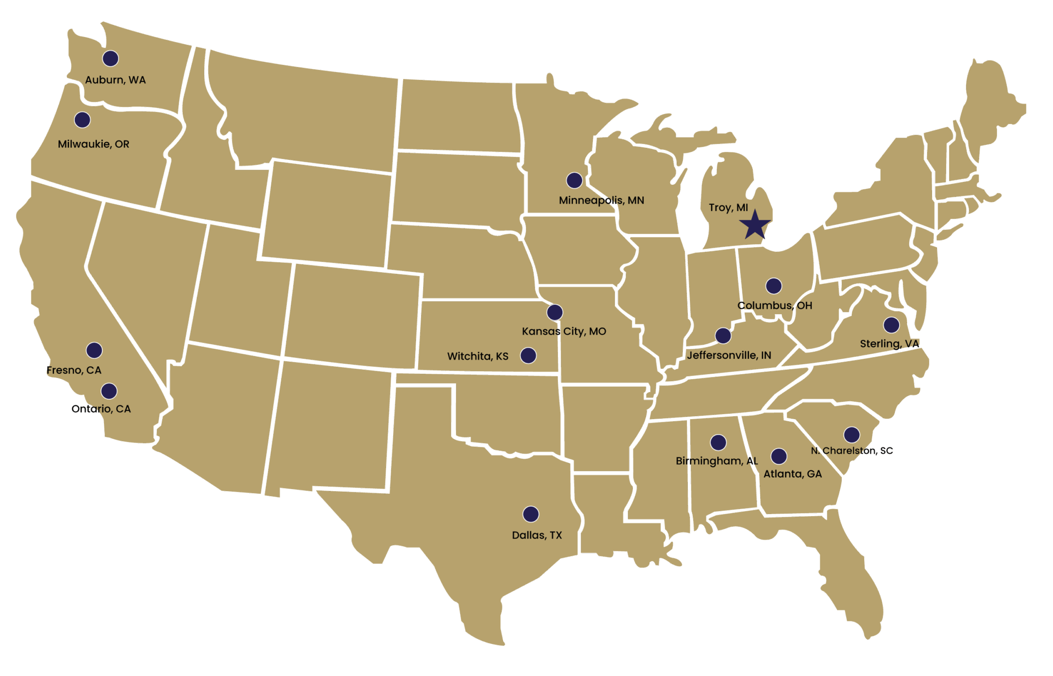 Headquartered in Troy, MI, our 13 strategically located stocking branches across the United States minimize costly downtime and enhance storage efficiency through our inventory on demand program.